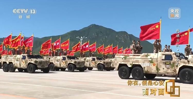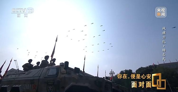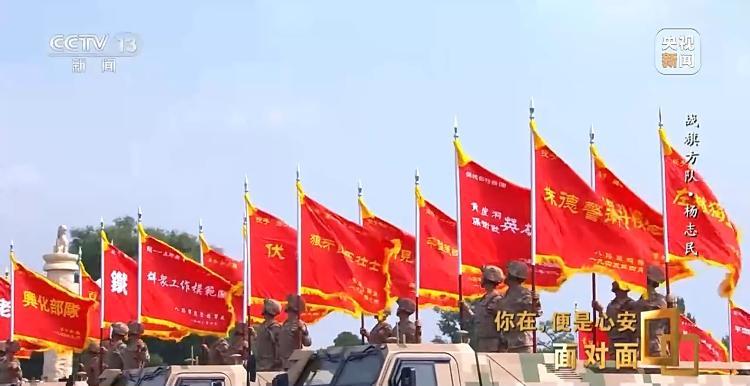 杨志民:我想这面旗帜还有另一种解读:它是我们中国人民自古以来、我们中华民族自古以来,热爱和平、守卫和平的一面旗帜。这面旗帜代表着我们中国人的和平之旗,也是正义之旗。这面和平和正义之旗,它引领着钢铁洪流,引领着这支强大的力量,过去、现在、未来,都是守卫中国和平、守卫世界和平的一支坚定的力量。它将发挥越来越重要的作用,对这一点,我是坚信不疑的。