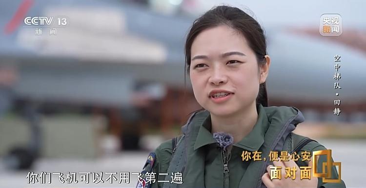 田静:为了这一天不来临,所以我每天都在很努力提高我自己的本领。地面准备、每一次飞行、每一次训练、每一个架次,我都希望我能做到最好。