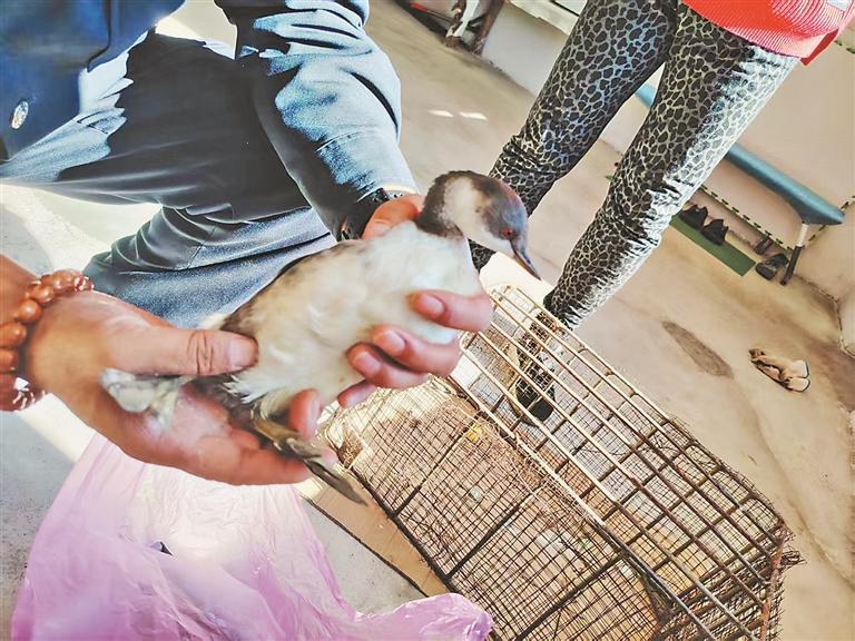 民警到达现场后,初步判断这只小鸟是国家三有保护动物——小䴙䴘。为避免小䴙䴘受到二次伤害,民警小心翼翼地将其放入铺有软布的收纳箱中。同时,民警第一时间联系宁安市林业和草原局,说明小䴙䴘的情况,并迅速将其送往专业救助机构。
